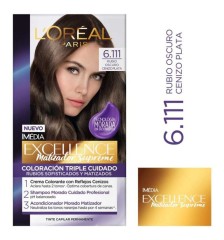 8.100 $Excellence N6.111. Tinte rubio oscuro cenizo plata, cobertura total y tono frío con acabado sofisticado. -